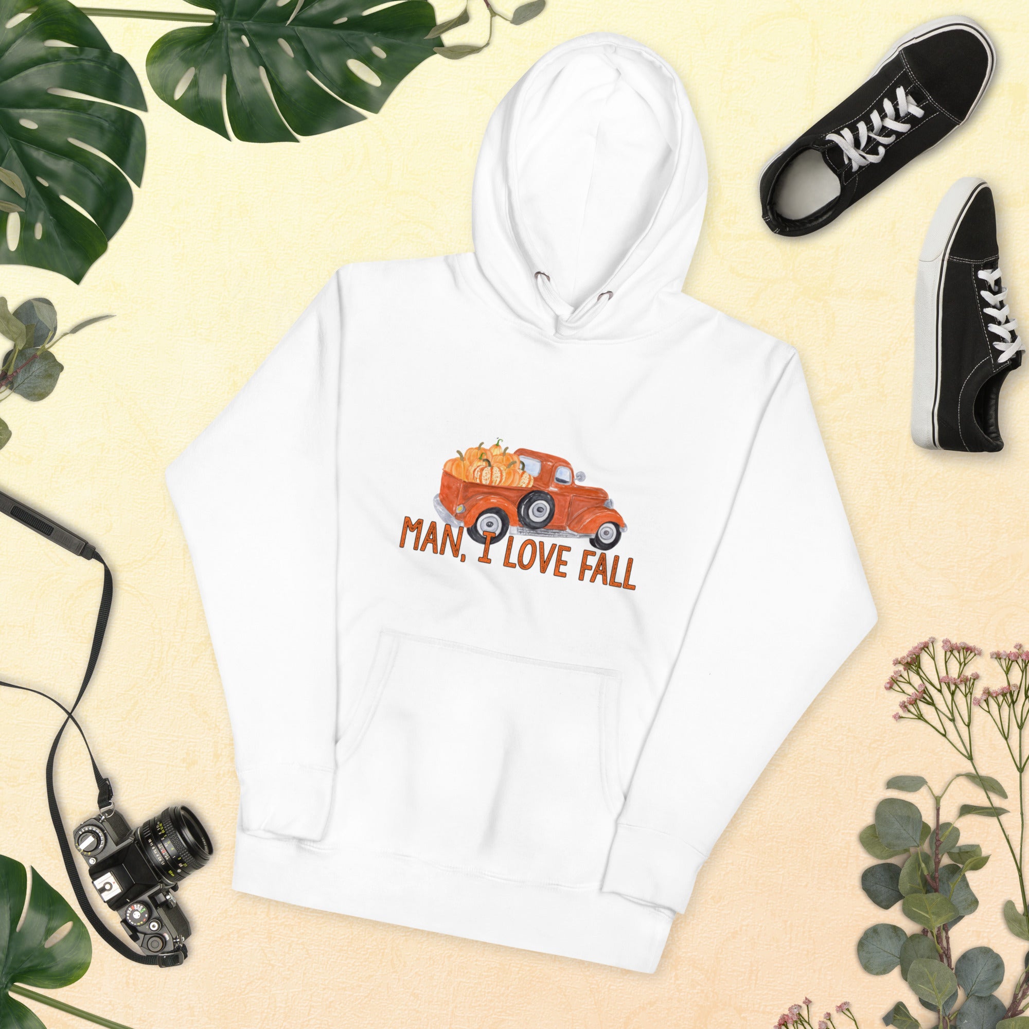 Experience the warmth and comfort of our Man I Love Fall Hoodie. Made with high-quality materials, this hoodie is perfect for chilly autumn days. Its unique design features the statement "Man I Love Fall" to express your love for the season. Stay cozy and stylish all season long with this must-have hoodie.
